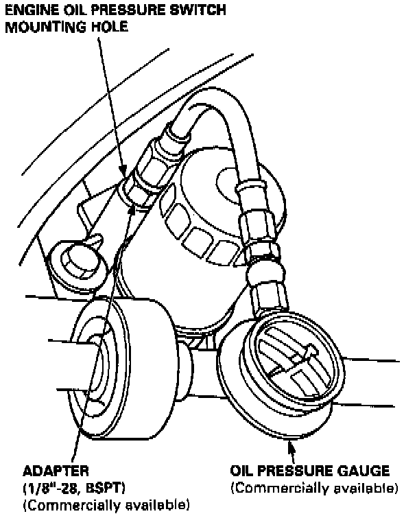 2. Remove the engine oil pressure switch, and install an oil pressure gauge.