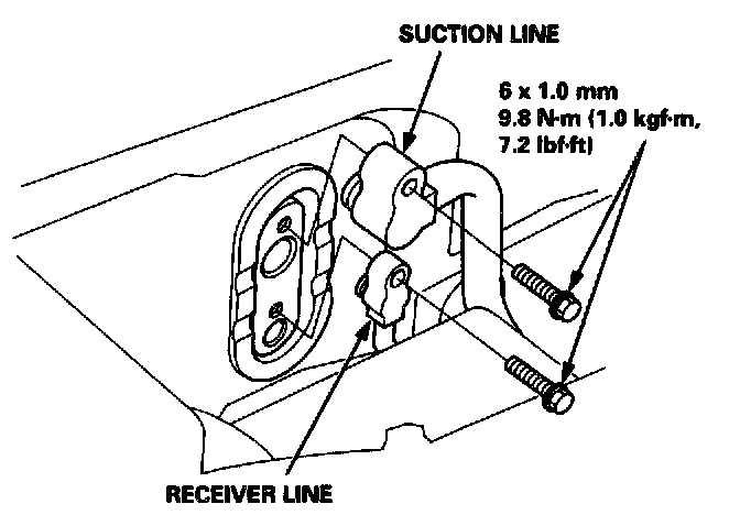 4. Remove the bolts, then disconnect the suction and receiver lines from the evaporator.