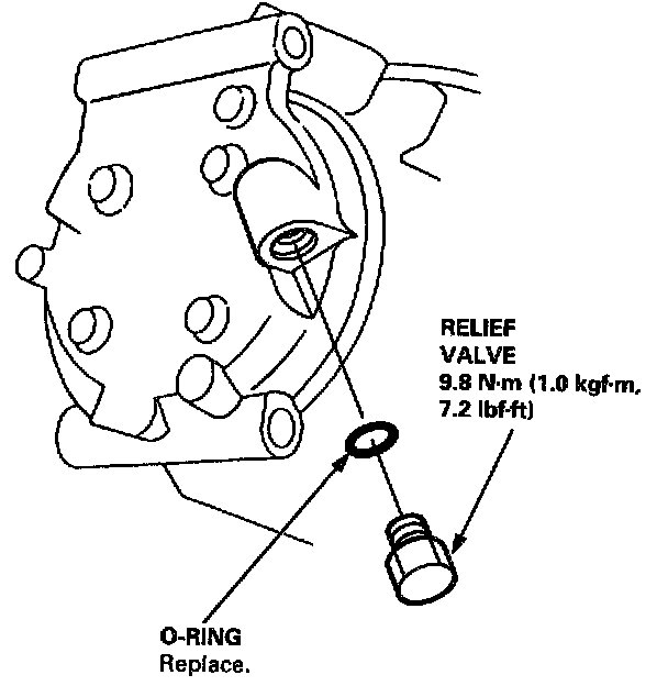 3. Replace the O-ring with a new one at the relief valve, and apply a thin coat of refrigerant oil before installing it.