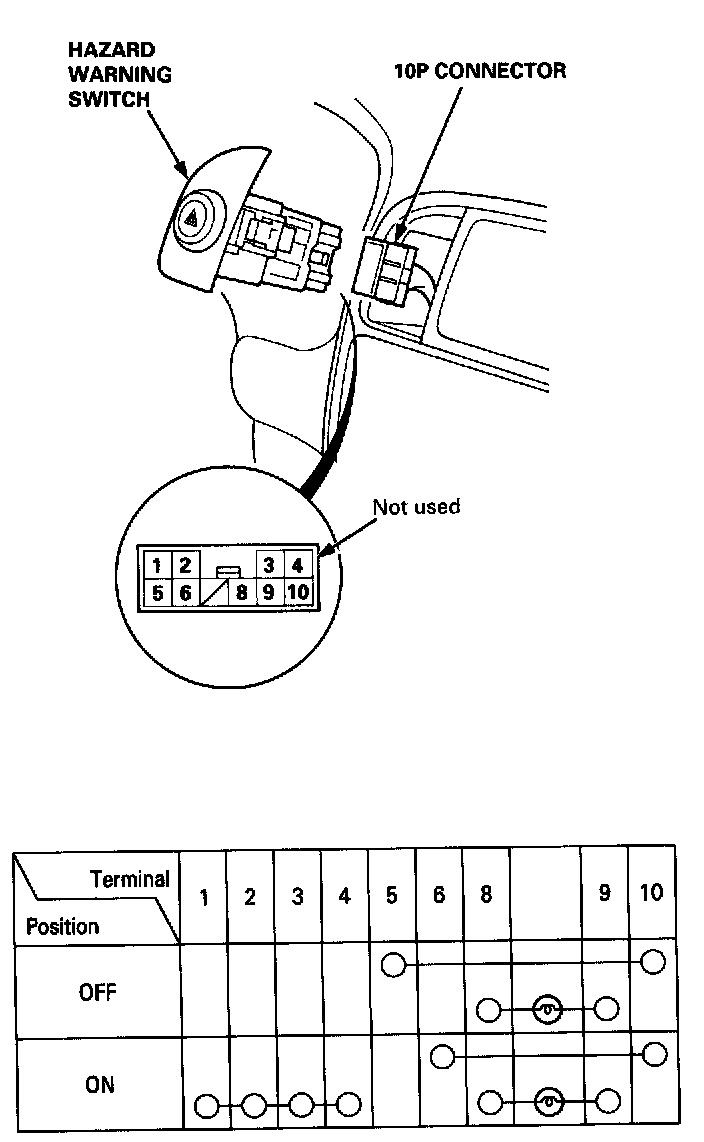 CAUTION: Be careful not to damage the hazard warning switch or the center outlet panel when prying the switch out.1. Pry the hazard warning switch out of the center outlet panel.