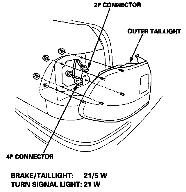 2. Disconnect the 4P and 2P connector from the outer taillight.
