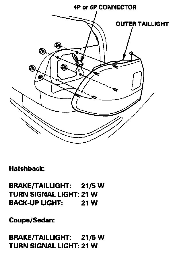 Outer Taillights ('96 - 00 models, except '99 - 00 Sedan):