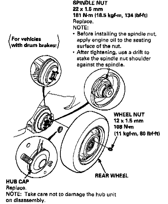 - Before installing the brake disc (or brake drum), clean the mating surfaces of the rear hub and the brake disc (or brake drum).