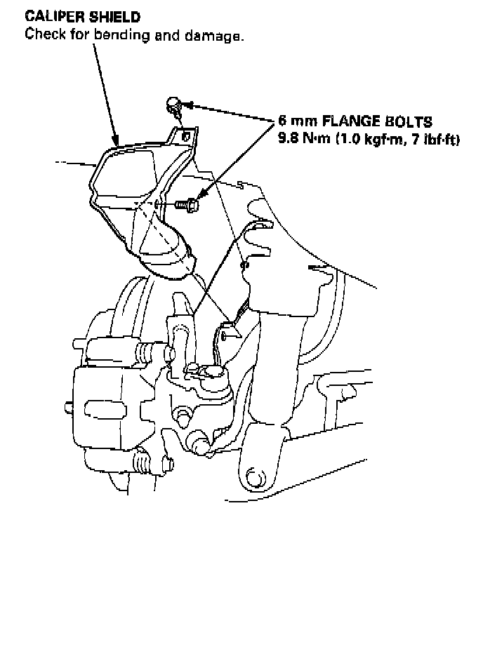 10. Remove the 6 mm flange bolts and caliper shield.