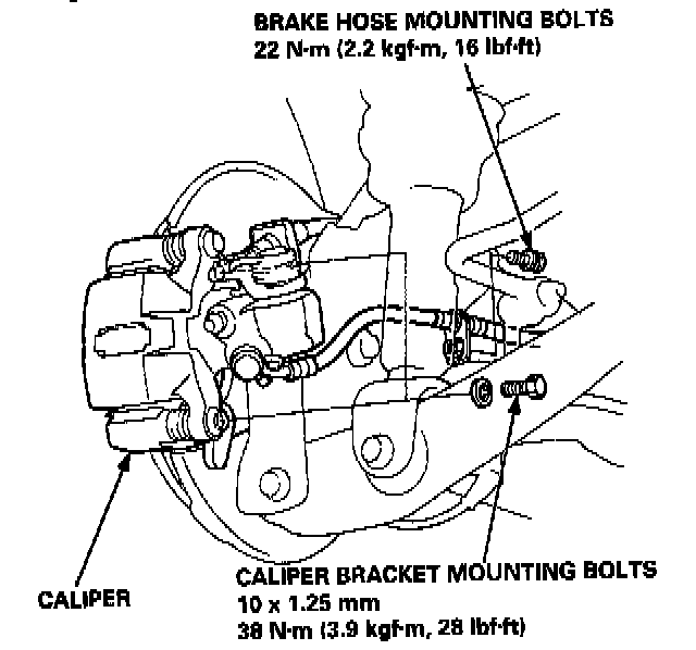 11. Remove the two brake hose mounting bolts.
