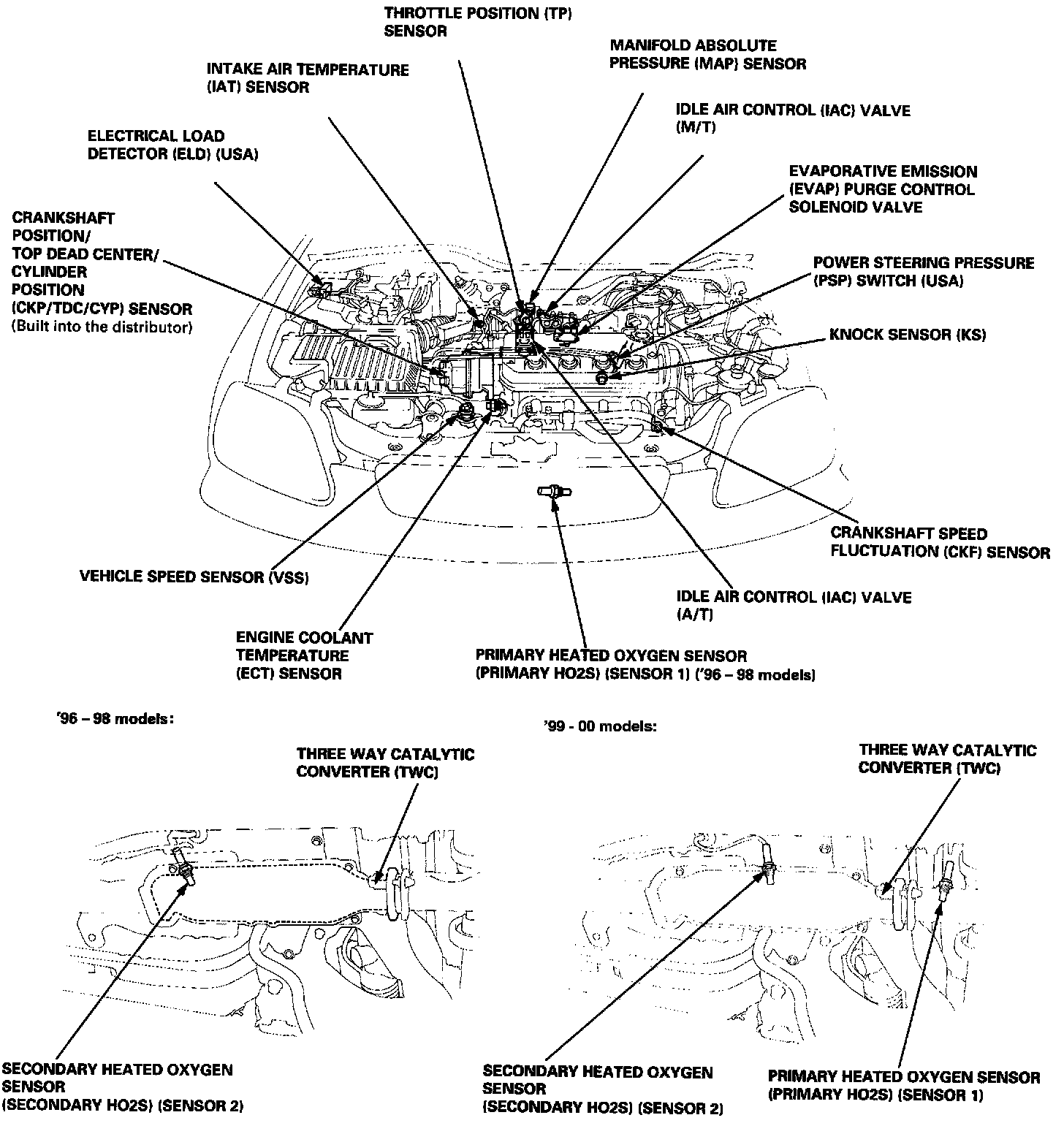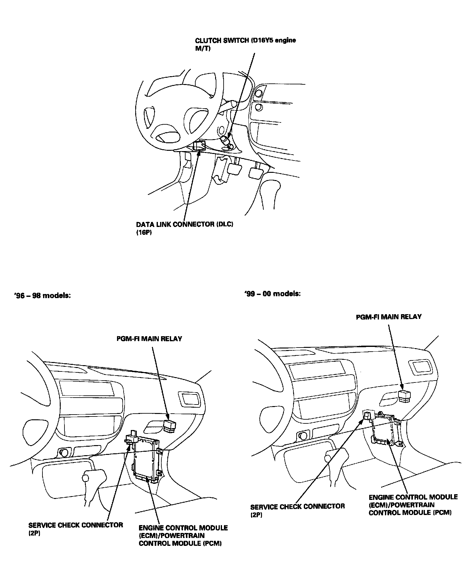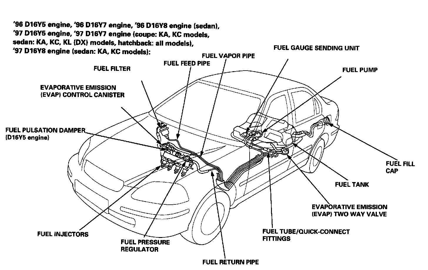 96 - 97 1.6L SOHC VTEC-E (D16Y5), 1.6L SOHC Non-VTEC (D16Y7) And 1.6L SOHC VTEC (D16Y8) Sedan: