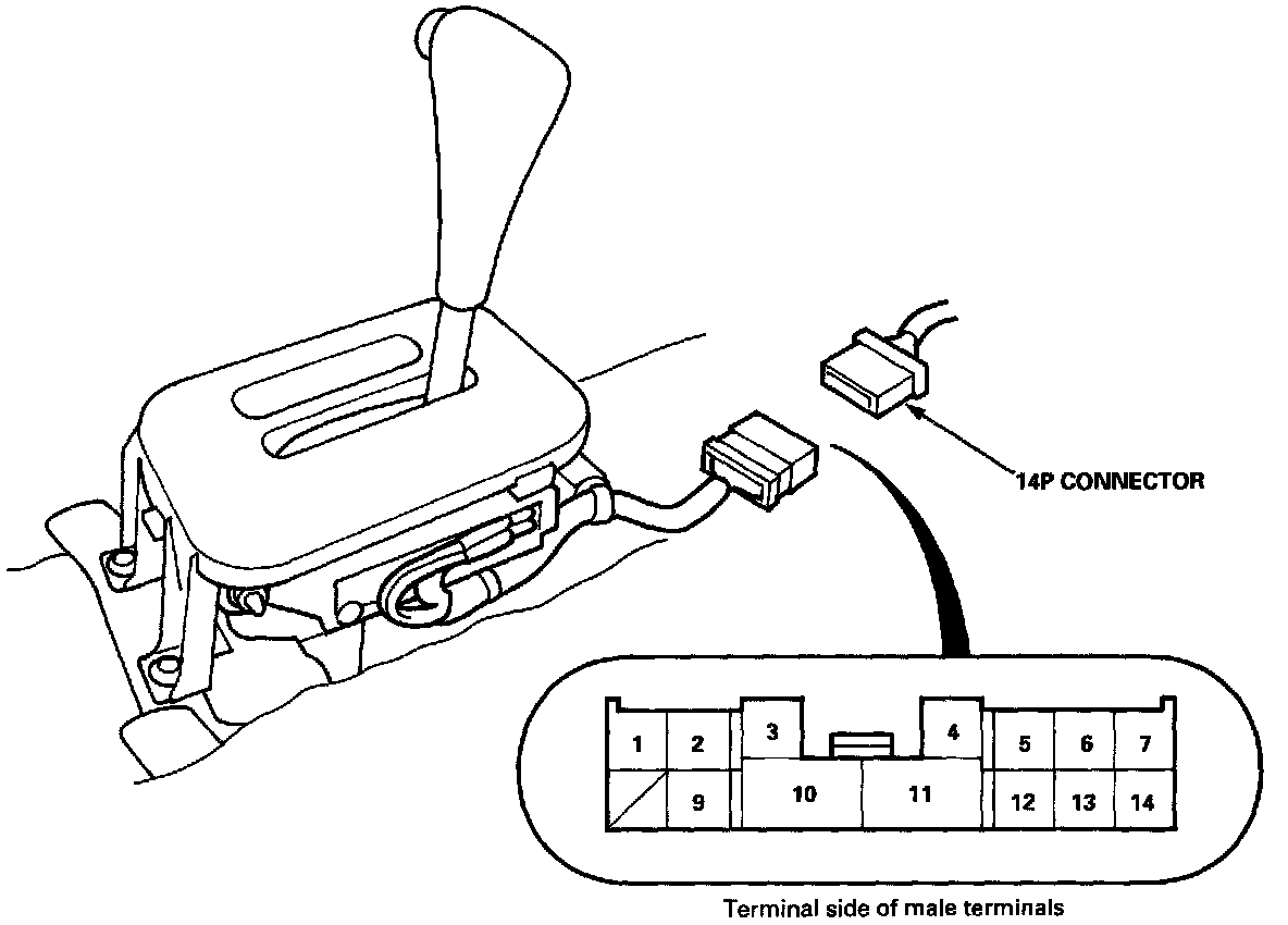 REPLACEMENT1. Remove the front console, then disconnect the 14P connector from the A/T gear position switch.