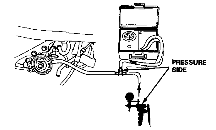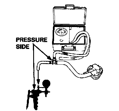 5. Slowly pressurize the vapor line while watching the gauge. The pressure should be stabilize momentarily above 1.0 kPa (8 mmHg, 0.3 in.Hg).