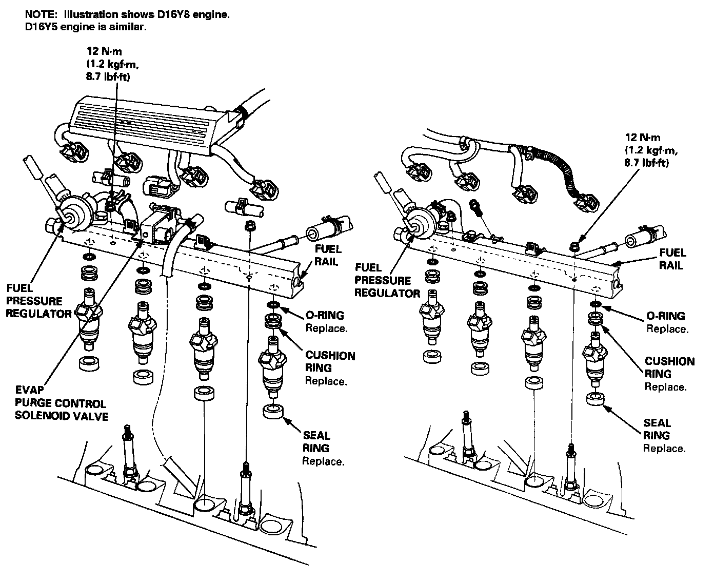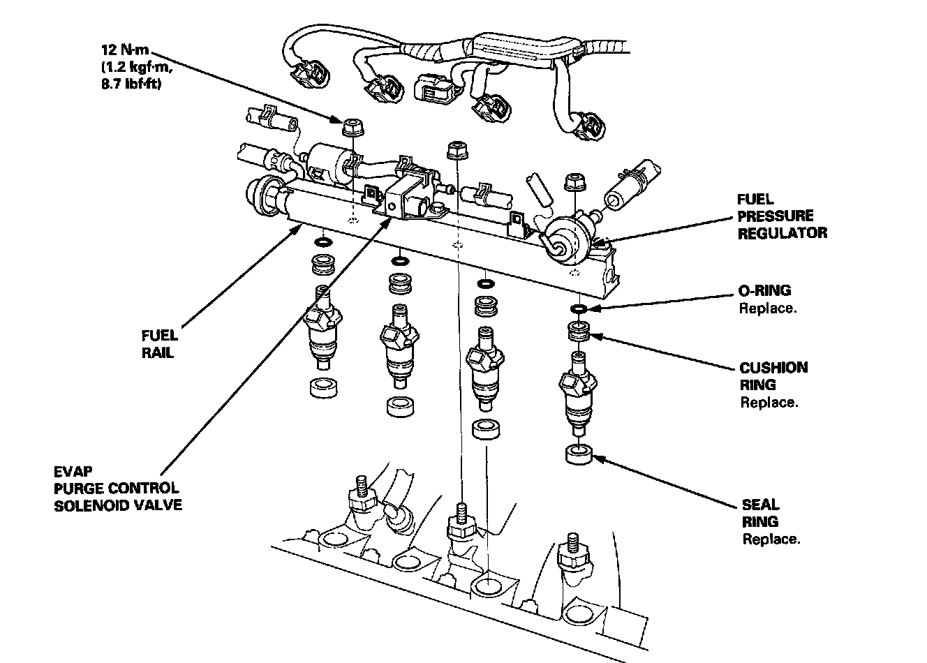 8. Coat new O-rings with clean engine oil, and put them on the fuel injectors.