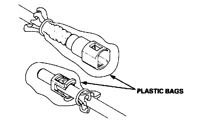5. To prevent damage and keep out foreign matter, cover the disconnected connector and pipe end with plastic bags.