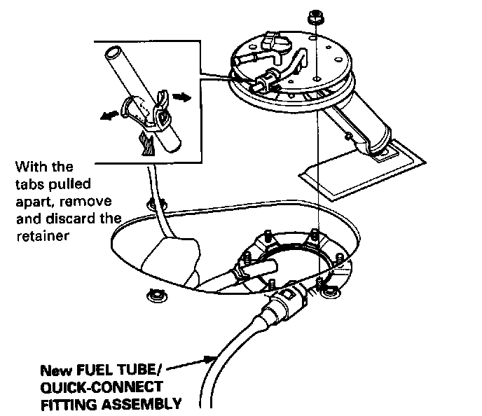 Before connecting a new fuel tube/quick-connect fitting assembly, remove the old retainer from the mating pipe.
