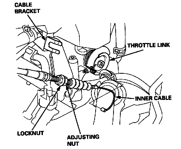 5. Remove the cable sheath from the throttle bracket, reset the adjusting nut and tighten the locknut.
