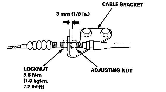 5. Turn the adjusting nut until it is 3 mm (1/8 in.) away from the cable bracket.