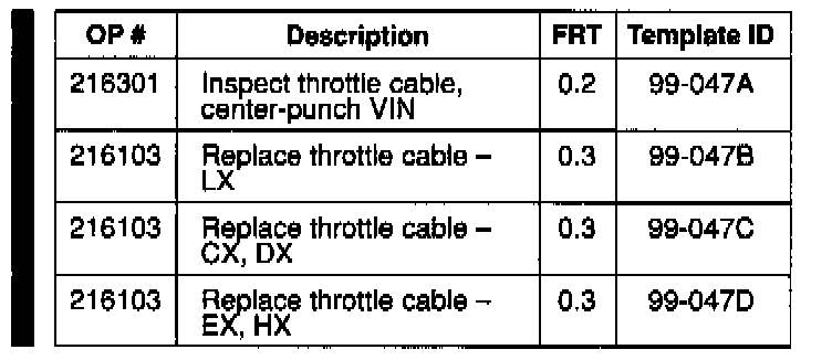 *1. Locate and write down the throttle cable production lot number stamped on the cable.