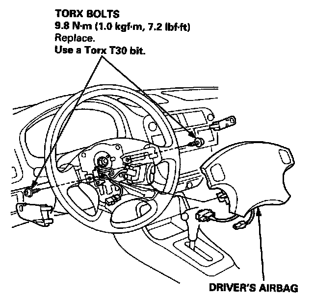Place the driver's airbag into the steering wheel, and secure it with new Torx bolts.