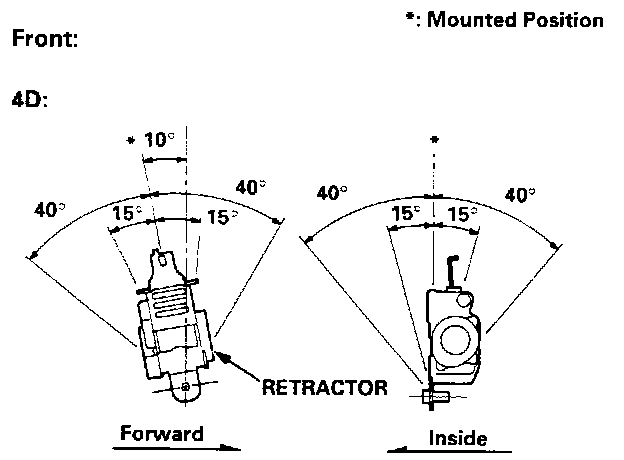 2. Make sure that the seat belt does not lock when the retractor is leaned slowly up to 150 from the mounted position. The seat belt should lock when the retractor is leaned over 400.
