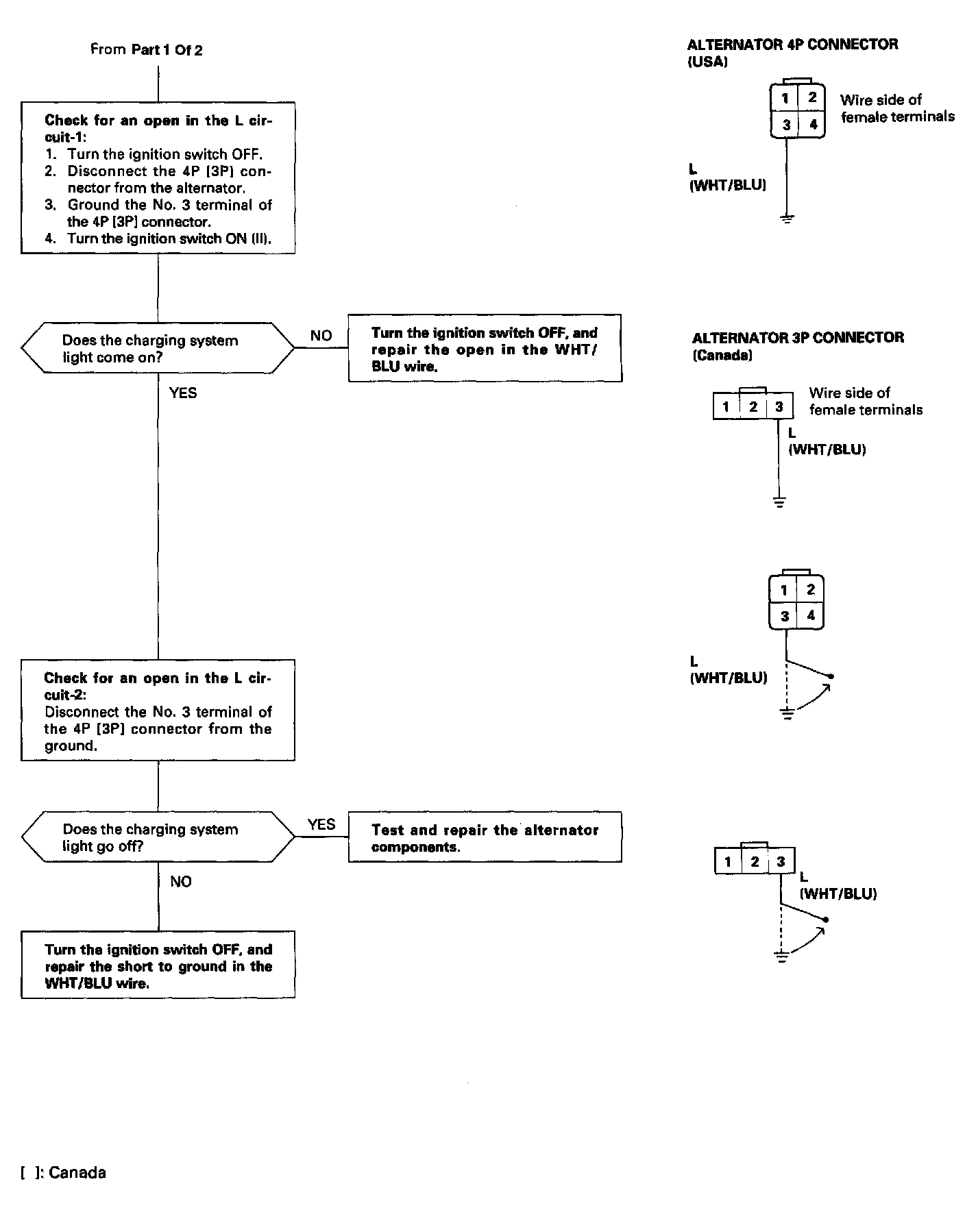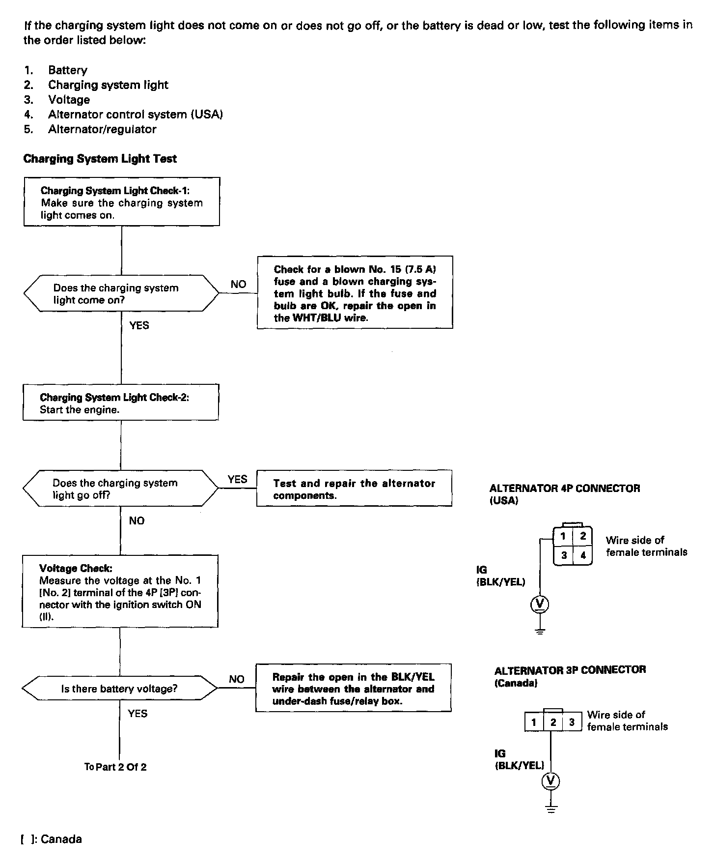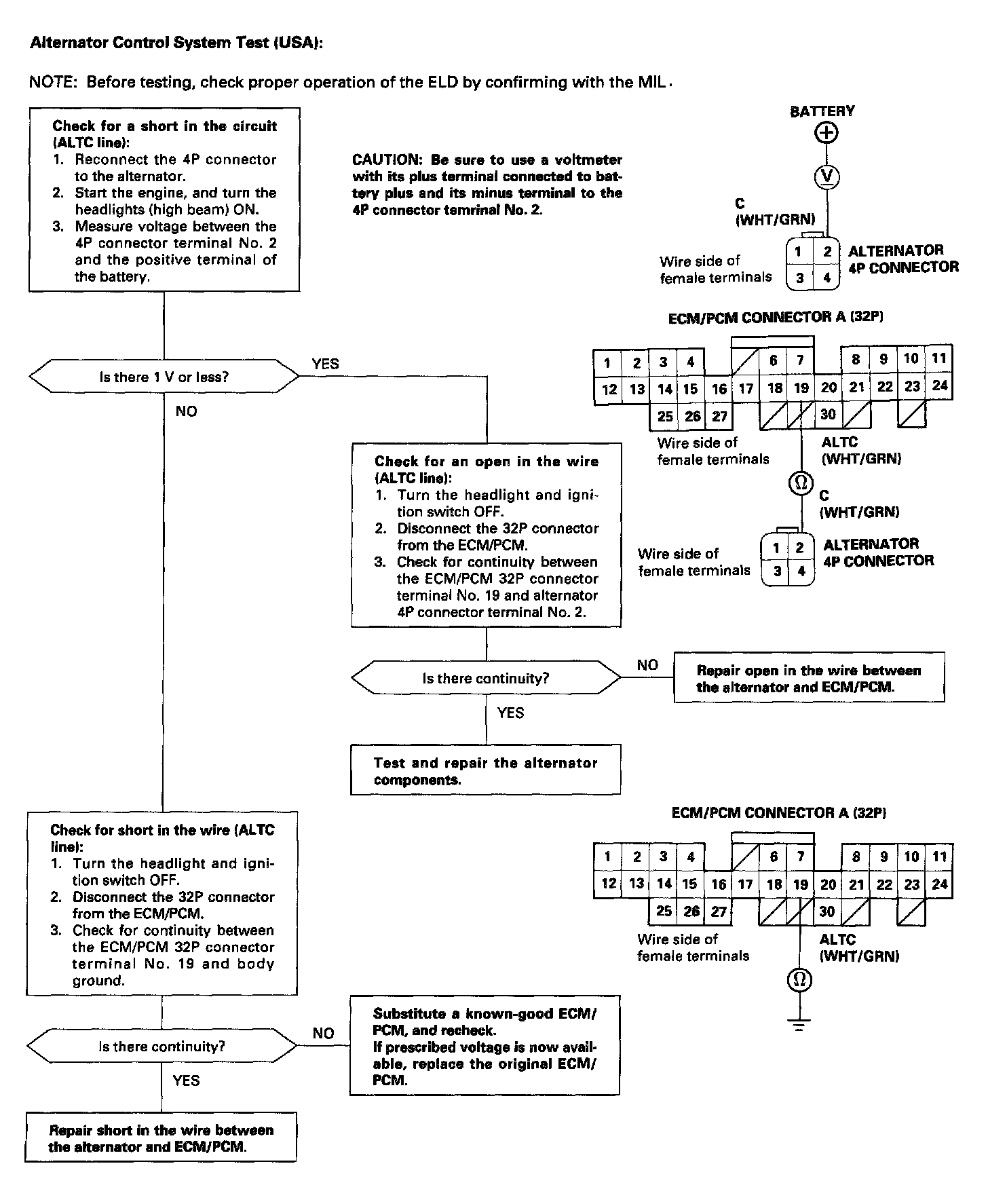 Alternator Control System Test (USA): '96-98 All and '99-00 SOHC VTEC-E (Manual Transmission):