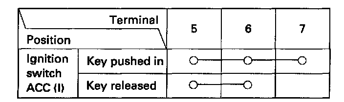 3. Check for continuity between the terminals in each key position according to the table.