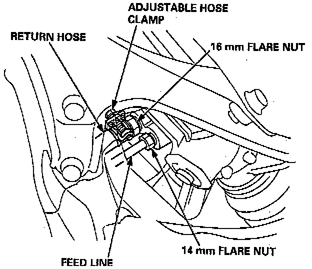 13. Loosen the 14 mm flare nut and disconnect the feed line.