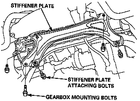 NOTE: Some stiffener plate attaching bolts are also used as gearbox mounting bolts. The gearbox will tilt to side when these bolts are removed.