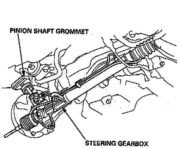 18. Pull the steering gearbox all the way down to clear the pinion shaft from the bulkhead, then remove the pinion shaft grommet.