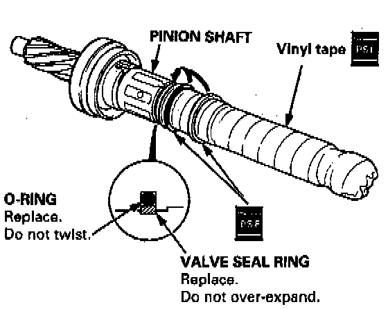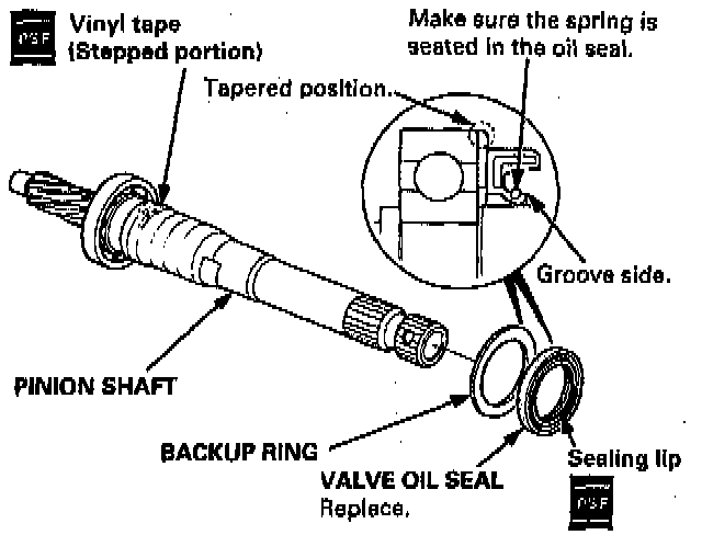 1. Apply vinyl tape to the stepped portion of the pinion shaft, and coat the surface of the vinyl tape with the power steering fluid.