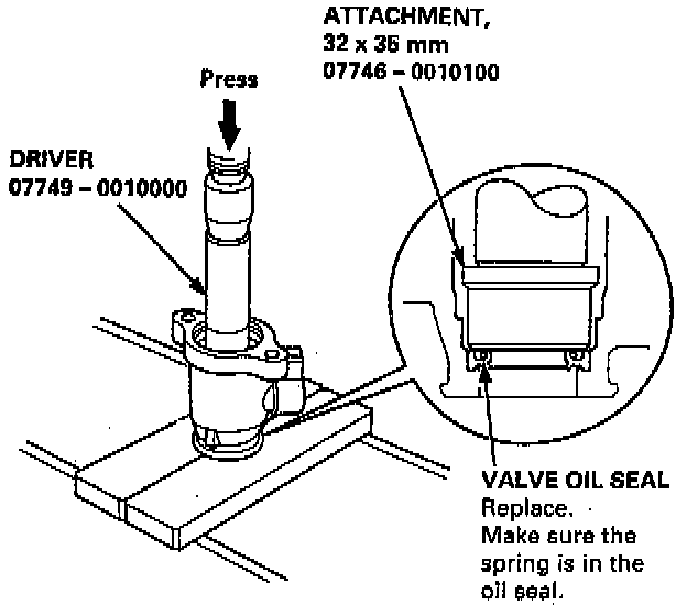 CAUTION: Install the valve oil seal with its grooved side facing opposite the hearing.