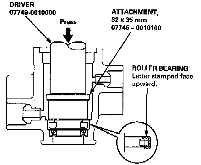 NOTE: Place the roller bearing on the valve housing with the stamped letter facing up towards the valve side.