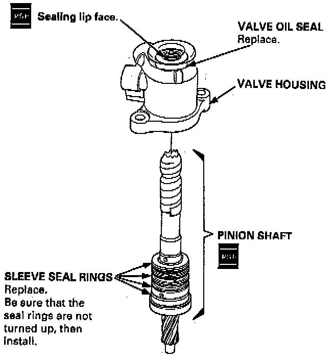 8. Apply power steering fluid to the surface of the valve seal ring that was installed on the pinion shaft.