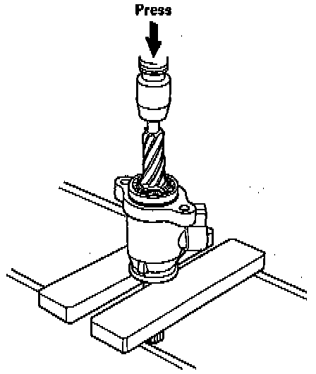 24. Press the pinion shaft/sleeve using a hydraulic press as shown.