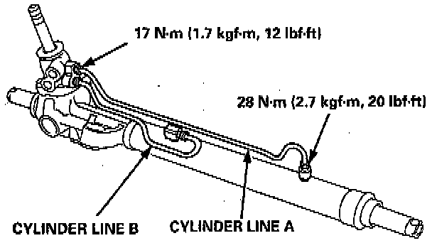 - Install the cylinder lines A and B by fighting the flare nuts by hand first, then tighten the flare nuts to the specified torque.