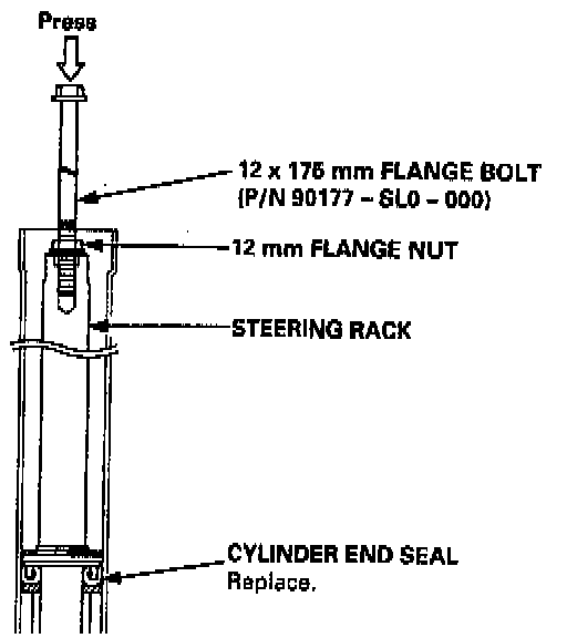 CAUTION: When installing the cylinder end seal, be careful not damage the sealing lip face of the seal with the edges or teeth of the steering rack.
