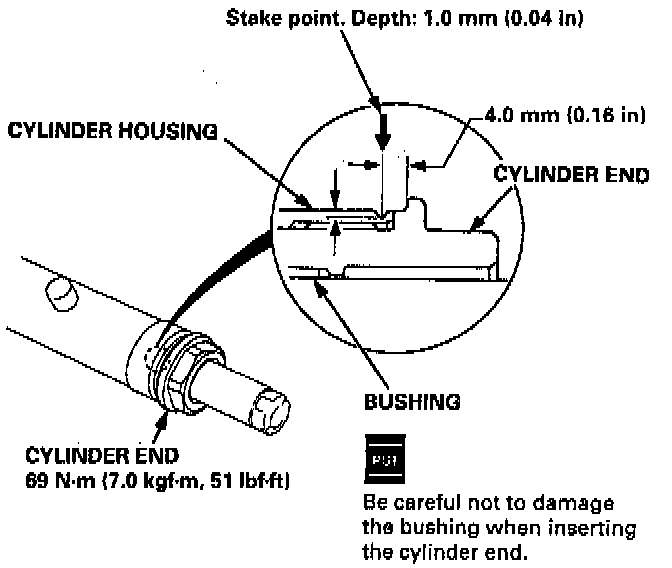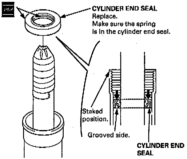 CAUTION: When installing the cylinder end seal, be careful not damage the sealing face of the seal with the threads and burrs at the staked position of the cylinder housing.