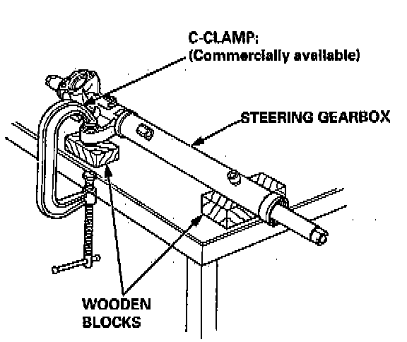 45. Hold the steering gearbox using a C-clamp as shown.