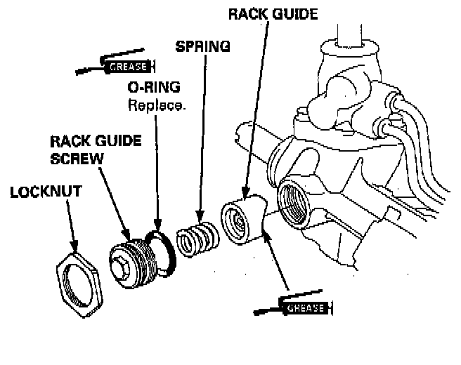 57. Apply a thin coat of grease to the new O-ring, and install it on the rack guide screw.