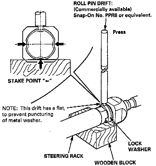 c. Stake the lock washer in the center of the flat section of the steering rack end.