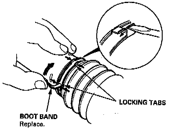 68. Install new boot bands on the boot, and bend both sets of locking tabs.