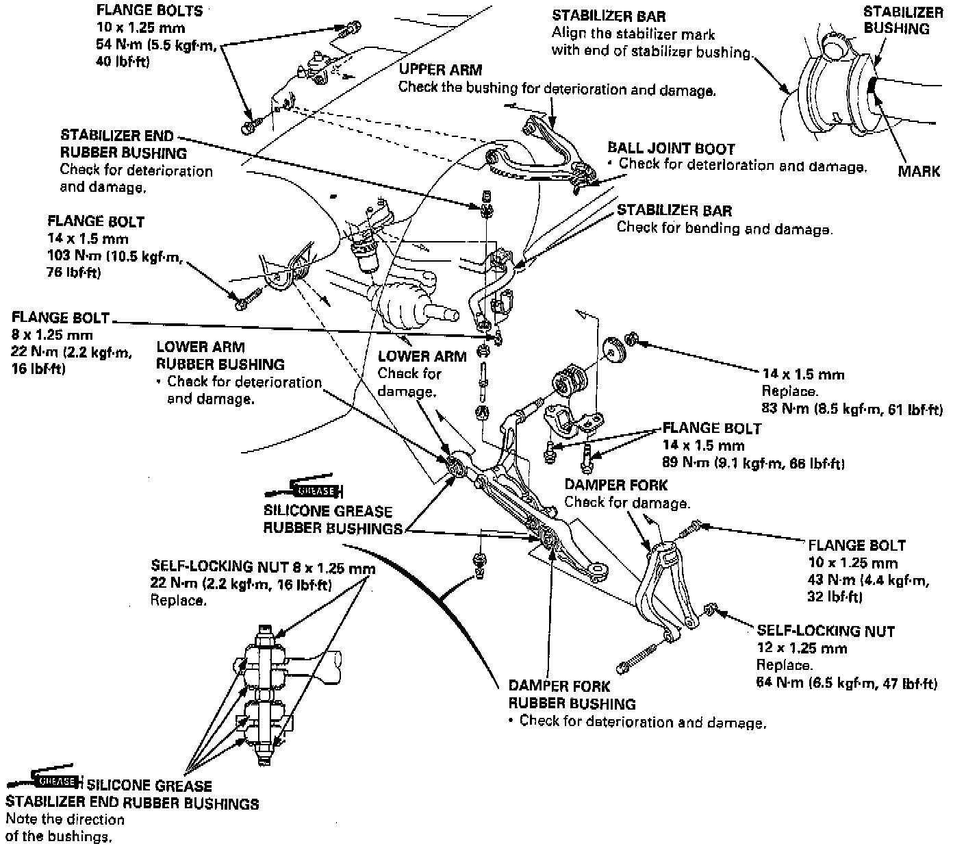- The vehicle should be on the ground before any bolts or nuts connected to rubber mounts or bushings are tightened.