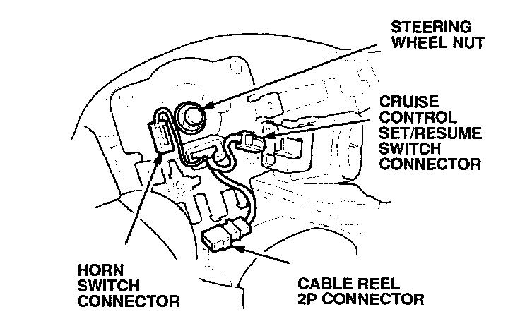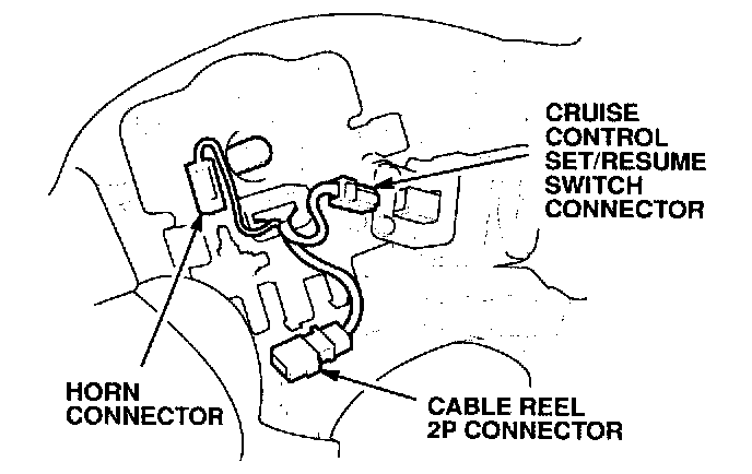 6. Disconnect the horn switch connector and the cruise control set/resume switch connector (if equipped).