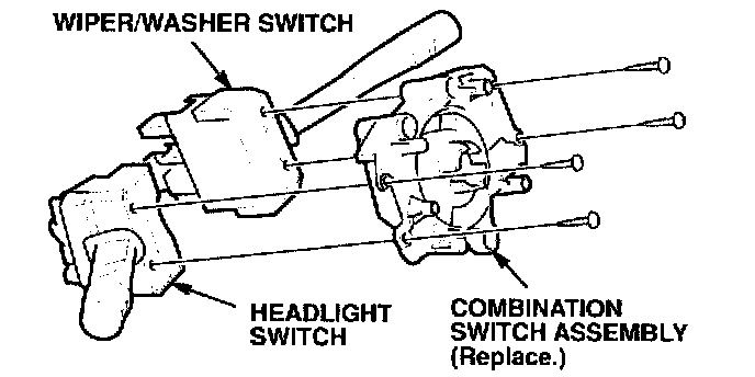 12. Remove the headlight and wiper/washer switches from the old combination switch assembly and install them on the new one (see PARTS INFORMATION).