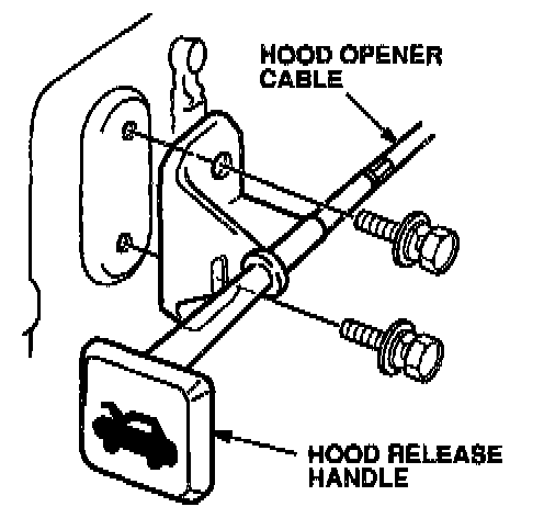 12. Install the hood release handle. Torque the bolts to 9.8 Nm (7.2 lb-ft).