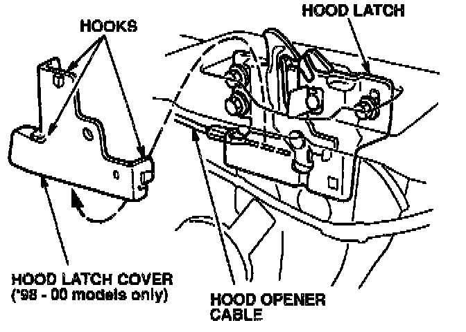 15. '98-00 models only: Reinstall the hood latch cover.