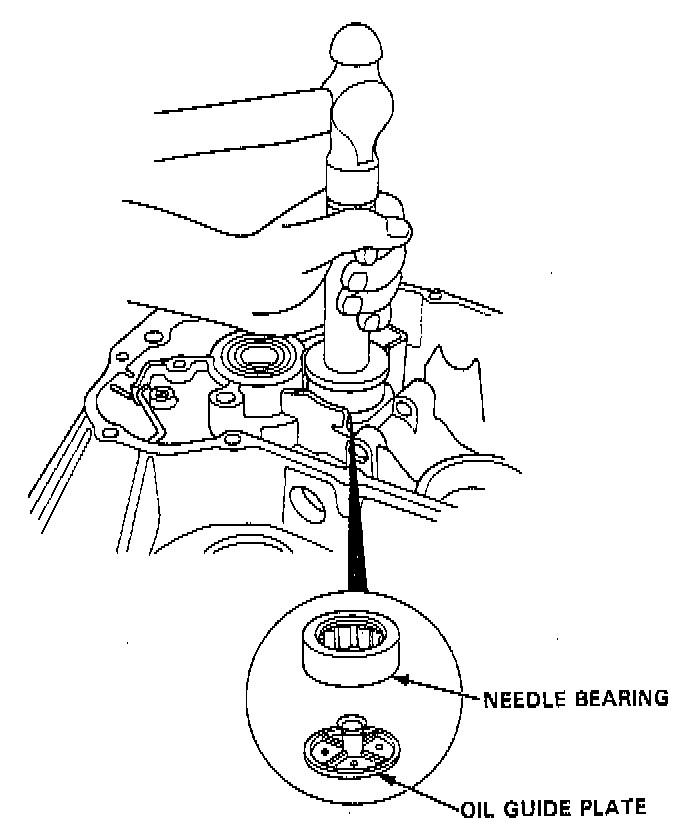 1. Remove the needle bearing using the special tool as shown, then remove the oil guide plate.