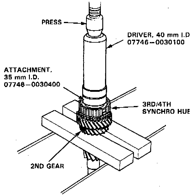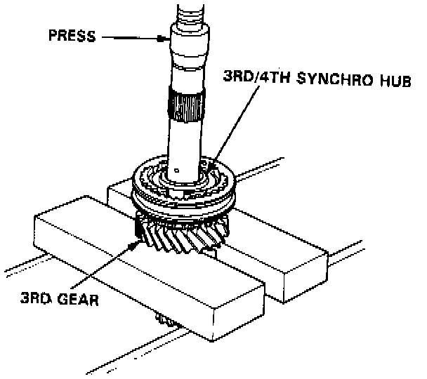 CAUTION: When installing the 3rd/4th and 5th synchro hubs, support the shaft on steel blocks, and install the synchro hubs using a press.