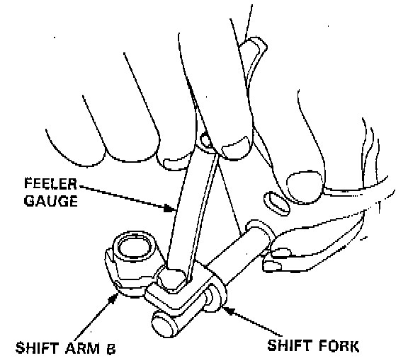 3. Measure the clearance between the shift piece or shift fork and the shift arm B.
