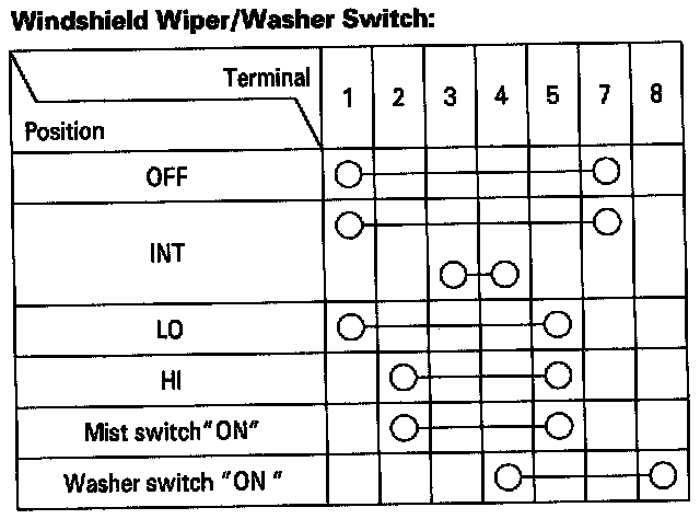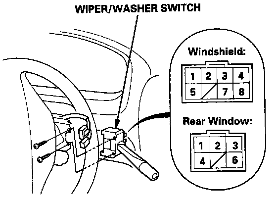 Windshield Washer Switch: Testing and Inspection