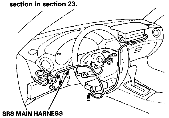 ^ All SRS wire harnesses are covered with yellow insulation. Before you disconnect any part of an SRS wire harness, disconnect the airbag connectors.