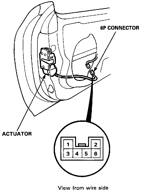 1. Remove the driver's door panel.2. Disconnect the 6P connector from the actuator.