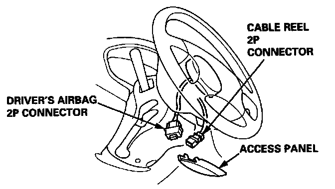 4. Remove steering wheel access panel and disconnect electrical connector located between air bag and cable reel, Fig. 2.