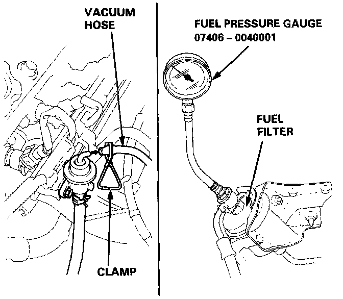 (with the fuel pressure regulator vacuum hose disconnected and pinched)